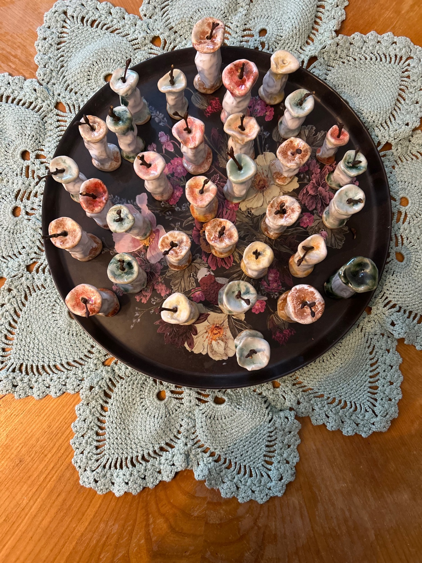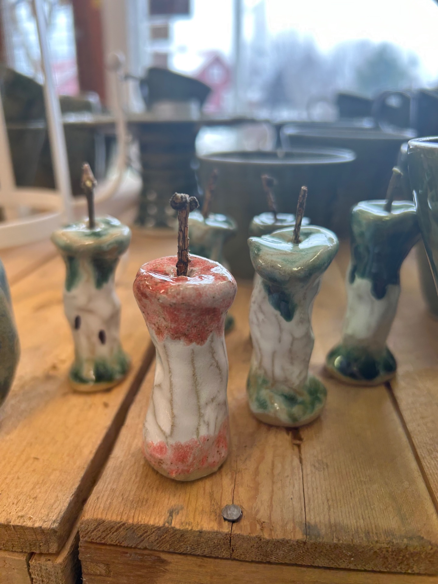 Ett äppelskrutt i keramik är bra för själen. Den här lilla skruttskulpturen är handgjord i keramik med kvist i trä och finns i blandade färger – från mustigt höstrött till lekfullt grönt och mjukt gulorange pastelligt. Varje äppelskrutt är unik, precis som livet självt. Lite kantig här, lite rund där. Precis som vi.